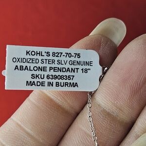 Oxidized sterling silver genuine abalone pendant.