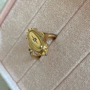 Victorian Revival Art Deco Style Starburst Celestial Mourning Jewelry Aesthetic Goth Dark Academia Retro Statement Ring Cocktail Ring Classic Elegant Ornate Gold Tone