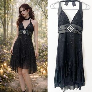 Vintage Y2K Taboo Little Black Fairy Babydoll Dress Sparkly Glitter Halter Neck Small whimsical whimsigoth fairy goth