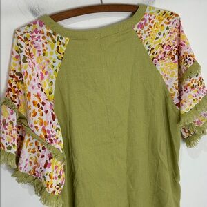 NWT UMGEE Linen Blend Mixed Print Lime Green Top Size Large