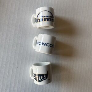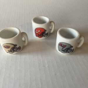 This collection of small NFL porcelain 1 inch ceramic mugs features a variety of teams, making it a perfect addition to any football fan's memorabilia collection. Each mug represents a different team from the National Football League (NFL), allowing fans to enjoy their favorite beverage in style. The compact size of the mugs makes them perfect for on-the-go use or for displaying on a shelf as a collectible item. Perfect for any football enthusiast looking to add a touch of their favorite team to their daily routine.