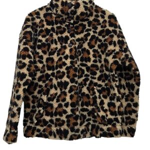 J Crew Womens Jacket Leopard Print Sherpa Pullover Teddycore Streetwear Sz Small
