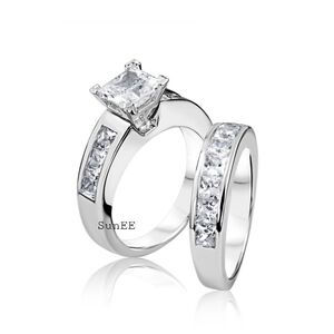 "2pcs Princess Cut Wedding Engagement Ring Set" 3.25ct, Main stone is about 1 carat big 6x6mm big