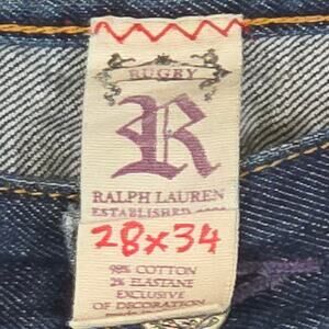 Ralph Lauren Vintage Women's Dark Wash Rugby Jeans. Size 28x34. Label Says 28x34 But Measuring Flat Waist 30 Inches; Inseam 32 Inches; Rise 8 Inches And Leg Opening Is 7 Inches.