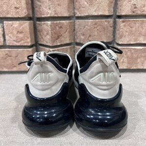 Sleek Nike Air Max 270 with black mesh and white details. Perfect for everyday wear.