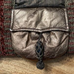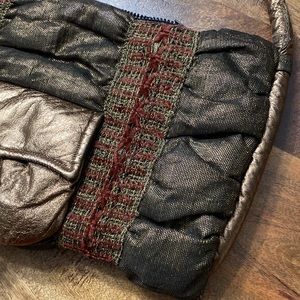 Rose Aronin for Roseeni vintage futuristic quilted gold leather woven shoulder