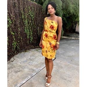 ALBERTA FERRETTI Silk Satin Floral Sleeveless Draped One Shoulder Sheath Dress 2