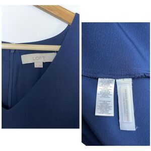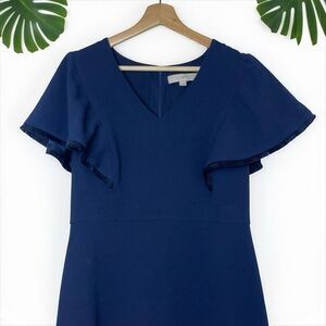 LOFT Fringe Trimmed Flutter Sleeve Dress in Navy