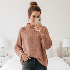 BDG Oversized Chunky Knit Mock Neck Slouchy Loose Fit Marled Knit Sweater Top