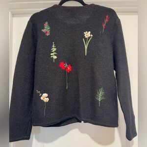 Vintage Susan Bristol Black Wool Cardigan with Floral Embroidery Size M EUC