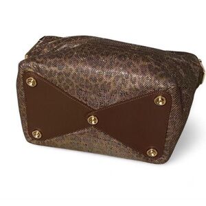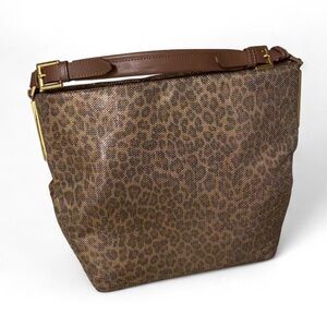 Chic hobo bag with a leopard pattern. Features a sleek brown handle.