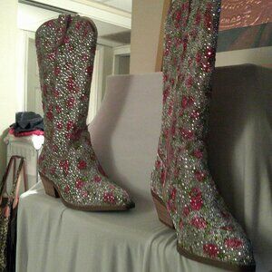 Brand new, never been worn Betsy Johnson, rhinestone, rose print cowboy boots