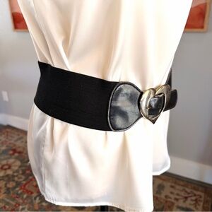 vintage 80s belt, heart buckle belt, wide stretch belt, silver heart belt, retro waist belt, statement belt, elastic belt, 80s accessory, faux leather belt, vintage waist cincher, bold buckle belt, romantic belt, cottagecore accessory, festival belt, high waist belt, women’s vintage belt
