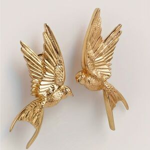 Elegant gold bird earrings. Perfect for adding a touch of glam to any outfit.