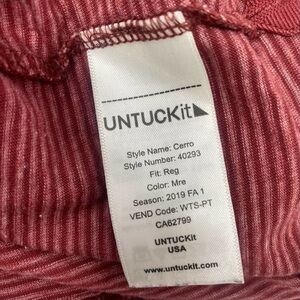 This is a pre owned Untuckit Mens Medium Red Striped "Cerro" Long Sleeve Polo Shirt. This item is in good condition with minimal or no signs of use.