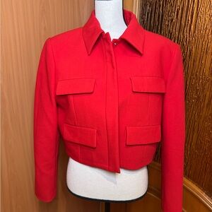 Zara Vibrant Red cropped flap Women's jacket blazer Sz XL