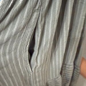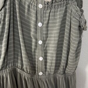 Chic olive maxi dress with button details. Features a stylish striped pattern. Ideal for versatile wear.