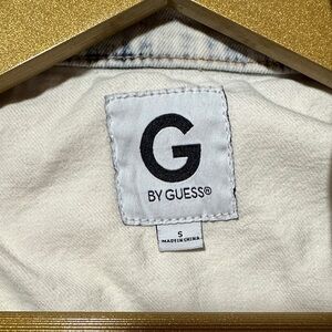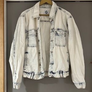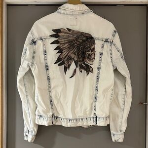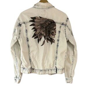 G by Guess White Denim Jacket with Feathered Headdress Skull Print on Back