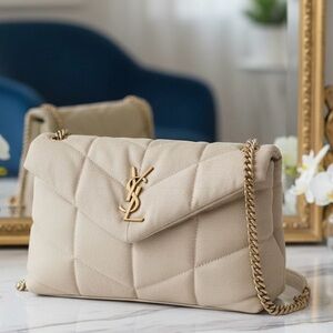 Saint Laurent Gold Chain Beige Quilted Bag✨