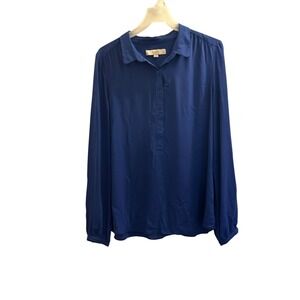 LOFT Navy Blue Long Sleeve Collared Button Front Shirt Women's Size M