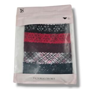 This Victoria's Secret 5-pack of cheeky panties features a beautiful assortment of floral lace designs in black, red, burgundy, teal, and a pink plaid pattern. Each pair is crafted with delicate lace detailing and a flattering cheeky cut for a comfortable yet stylish fit. These panties are brand new in their original packaging, offering a versatile collection of colors and patterns.