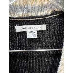 Stay cozy and stylish with this blue striped V-neck sweater from American Eagle. Perfect for layering, it offers a chic look for any occasion. Ideal for a casual day out or a cozy night in.