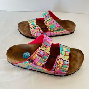 Birkenstock Arizona Gator Gleam Raspberry Metallic Sandals Size 41/10-10.5.Stylish iridescent pink sandals with adjustable straps. Comfortable and trendy. In good condition. Feel free to ask any questions before purchase.