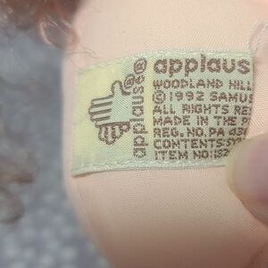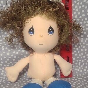 The l993 Applause Precious Moments JULIE 'July Doll of the Month' is a vintage collectible doll featuring the character Julie from the July Doll of the Month series. Standing at 10 inches tall with curly brown hair, this girl doll is crafted from cloth and fabric materials, making it a delicate and charming addition to any doll collection. With a light complexion and brown eyes, this doll captures the essence of the 1990s and is suitable for all occasions, making it a perfect gift for collectors and enthusiasts of all ages.