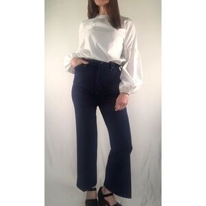 VGUC Vintage Dark Blue Boot Cut Pants Women’s 30 Waist-Fits Very Narrow Like 26. Pair with your favorite vintage shirt. Loved these when I bought them from another posture, but they were just too small. I wear a waist 30 but they are cut very narrow throughout the hips. Freshly laundered and steamed and ready to wear.