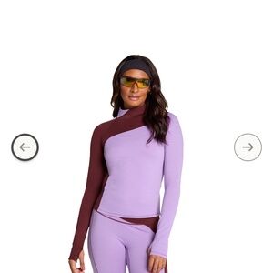 Comfy two-piece athletic set bought from Free People. Long sleeve top and matching leggings. Color block design with lavender and burgundy. Good for layering or active wear. Minor pilling on fabric. Shirt & pants retails for $128 alone.