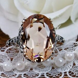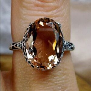 Peach Topaz Edwardian Revival Silver Toned Ring Coquette Bauble