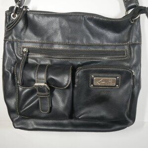 Kim Rogers Black Leather Shoulder Bag Satchel 14x12x3 pockets