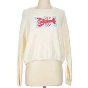 Coastal Grandma Red/Cream Lobster Sweater Women's SZ S Summer Beach Vibes.
