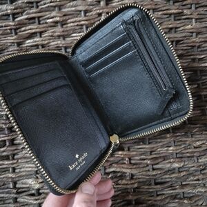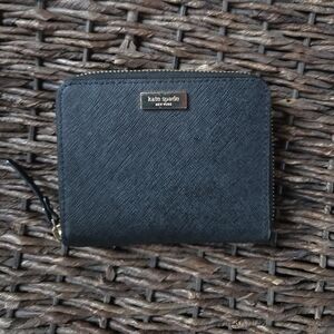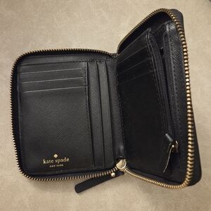 Kate Spade Womens Classic Leather Wallet Black Zip Around Compact Saffiano Gift