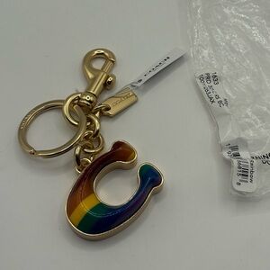 white signature monogram canvas with tan leather trim and a prominent buckle closure