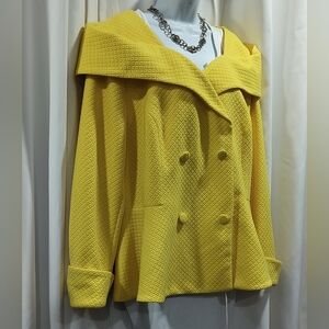 Brighten your wardrobe with this vibrant yellow pea coat from Ashro. Features a stylish double-breasted design and textured fabric.