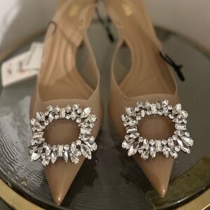 Zara Beige Heels with Crystal Embellishments
