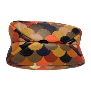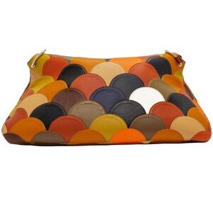 Elevate your style with this stunning Chloé Juana multicolor scalloped leather shoulder bag. Featuring a unique layered scale design in warm neutral and jewel tones, this designer purse is finished with a polished chain strap for a chic, modern look. Crafted from high-quality leather, it offers both durability and luxury appeal. Perfect for day-to-night wear, travel, or special occasions. A rare and eye-catching statement bag for any fashion-forward wardrobe.
