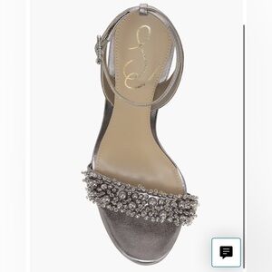 Tags: Sam Edelman; silver; pewter; heels; leather; pumps; shoes; dress shoes; size 10; comfortable; date night; party; special occasion; closet clear out; trending now; jade; sandals; open toe; rhinestone; bling; wedding