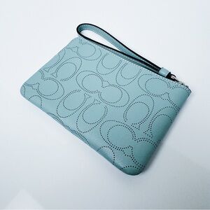 Coach - Light Blue Monogram Perforated Wristlet Pouch