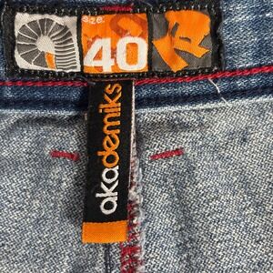 Keywords: Akademiks Jeans, Mens Denim, Streetwear, Relaxed Fit, Blue Jeans, Urban Fashion, Casual Wear, Hip Hop Style, Baggy Jeans, Distressed Denim, Size 40, Straight Leg, Logomania, RN100964