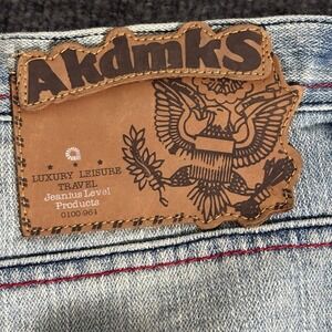 Discover urban cool with these bold Akademiks denim jeans. Crafted for comfort and style, these jeans feature a distinctive light wash with stylish fading that exudes a laid-back vibe. The relaxed fit ensures all-day ease, while the unique red stitching and branded hardware add a touch of edgy detailing. Perfect for casual outings, concerts, or weekend adventures.