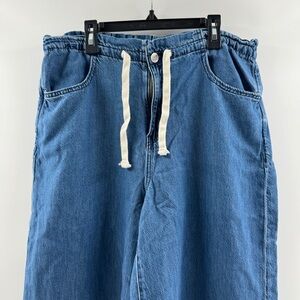 Gap Denim Pull On Baggy Jeans Size Large Medium Wash Drawstring Waist