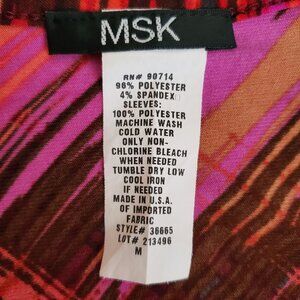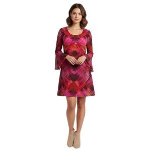 MSK Women's Pink Red Orange Print Sheer Bell Sleeve Cocktail Dress Size Medium