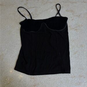 CORSET-STYLE TANK WITH SEAMING AT THE BODICE FEATURING GLOSSY ELASTIC STRAPS.