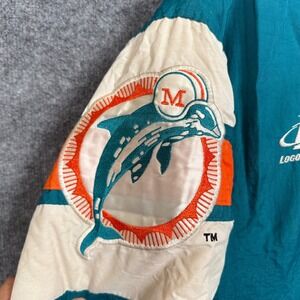 Vintage Pro Line Mens Size Large Jacket Puffer Aqua Green NFL Miami Dolphins Hooded Full Zip Football