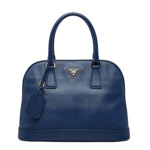 Used Prada Triangle Logo Plate Handbag in Blue Saffiano Leather for Women (SKU: GZl1feqe)