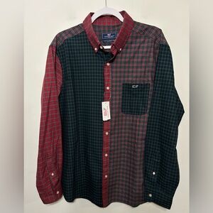 New! Vineyard Vines Tartan Plaid Poplin Button Down Whale Shirt Mens Size Large