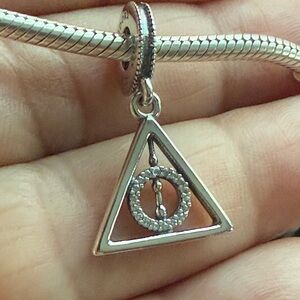 Stylish Pandora charm with a geometric triangle design. Adds elegance to any look.