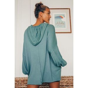 Lulu’s XS Oversized Blue V-Neck Hooded Long Sleeve Beach Top Casual Relaxed Fit
